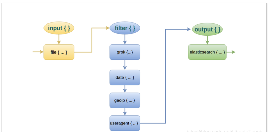 Logstash 配置项中有两个必需元素,输入(inputs)和输出(ouputs),以及一个可选元素 filters 过滤器插件。input 可以配置来源数据,过滤器插件在你指定时修改数据,output 将数据写入目标。