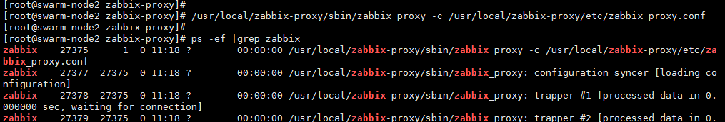 [root@swarm-node2 zabbix-proxy]# /usr/local/zabbix-proxy/sbin/zabbix_proxy -c /usr/local/zabbix-proxy/etc/zabbix_proxy.conf