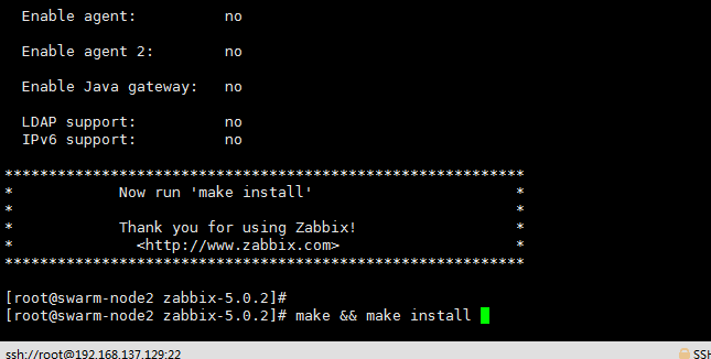 [root@swarm-node2 zabbix-5.0.2]# make && make install