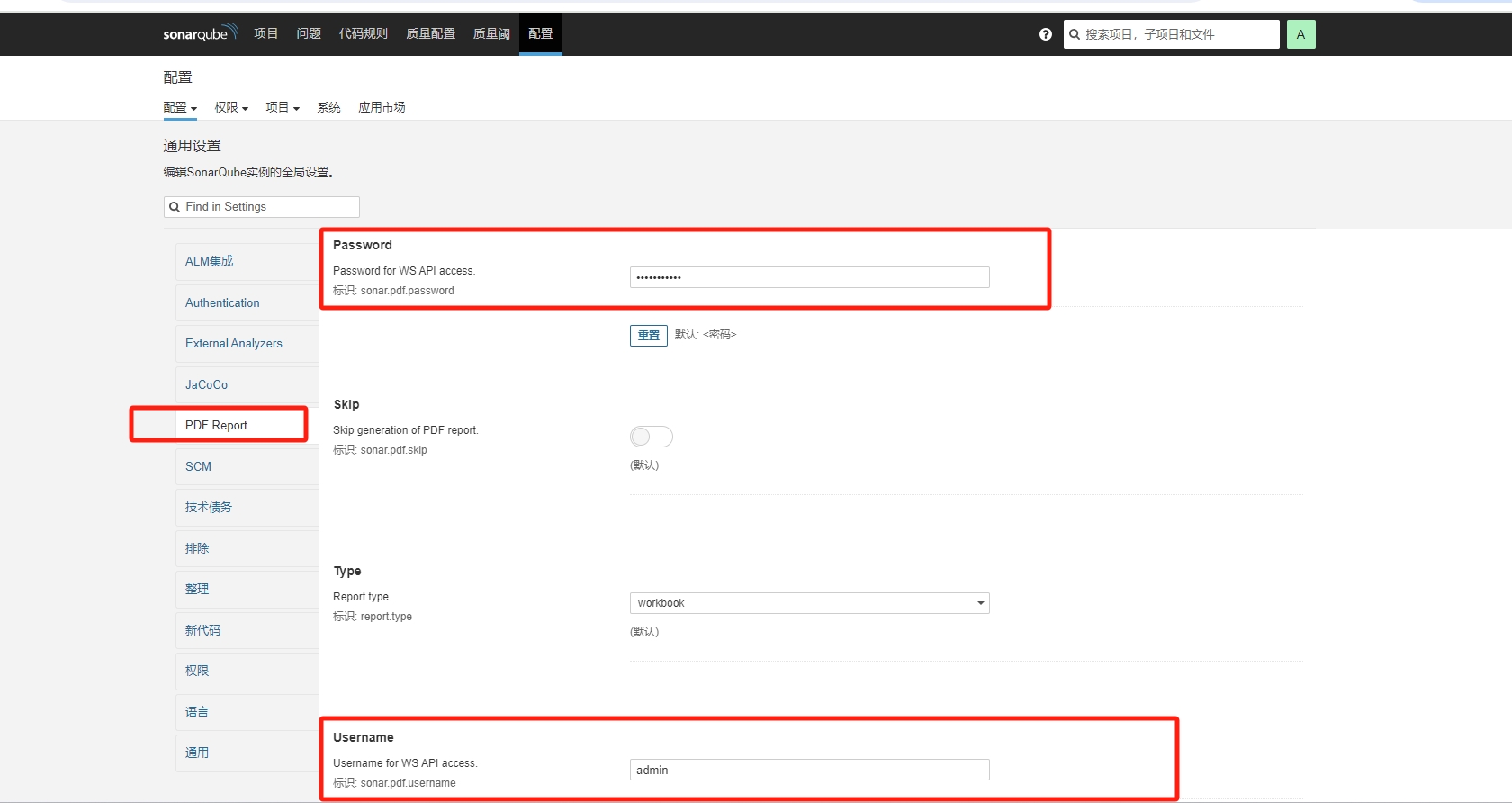 服务重启后可以看到配置页如下,PDF report为添加插件后新增页签。