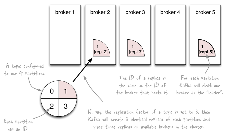 如上图,一个Topic有四个Partition,每个Partition两个replication。